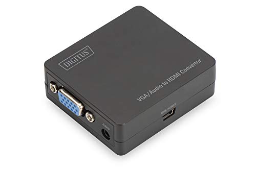 DIGITUS Convertisseur VGA vers HDMI - avec entrée Audio Via RCA (stéréo) - Full HD 1080p - Alimentation Via USB - Noir