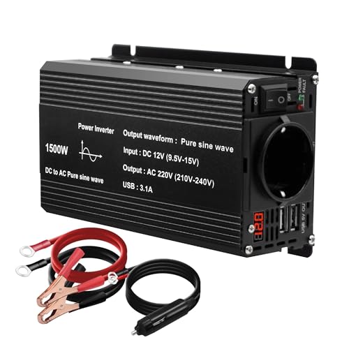 TAGEEBLU 1000W convertisseur 12v 220v Pur Sinus, transformateur 12v 220v avec écran LCD, 1 Prises UE