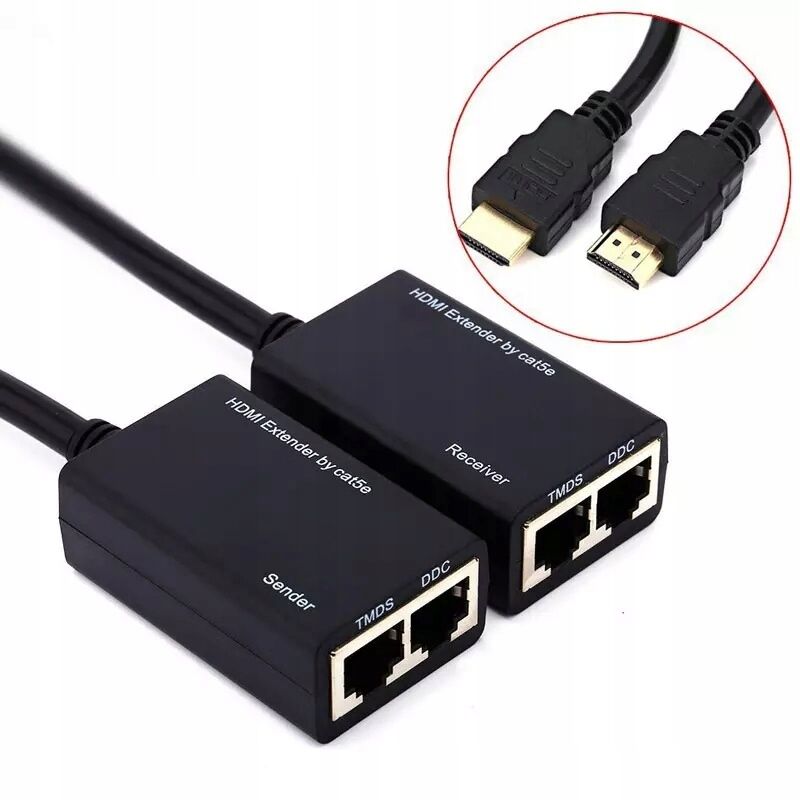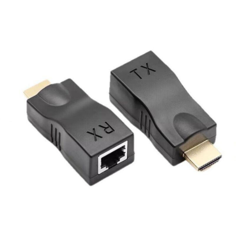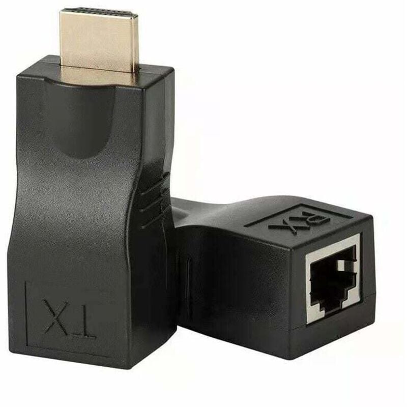 equlup 2Pcs Adaptateurs d'extension HDMI, prolongateur HDMI 30 m, convertisseur-répéteur câble d'extension RJ45 ABS émetteur TX récepteur RX pour CAT-5e Cat-6