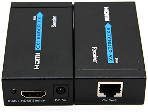 BolAAzuL Adaptateur RJ45 HDMI Extendeur HDMI 1.4 vers RJ45 60M 1080P Extension HD MI Netzwerk Extender Convertisseur Réseau Via Câble Cat5e/6/7 pour Moniteur PC Laptop HDTV Ethernet