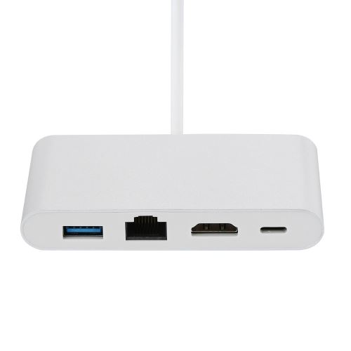 Convertisseur 4-en-1 Type-C vers USB 3.0, RJ45, HDMI et PD, hub adaptateur vidéo 4K, dongle multiport compact avec Ethernet et Power Delivery pour ordinateurs portables et tablettes