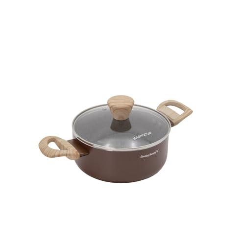 KASANOVA Cooking Therapy casserole antiadhésive marron, 1 manche, couvercle – R, revêtement à base d’eau, compatible avec tous les types de feux, sans PFOA ni nickel (18 cm)