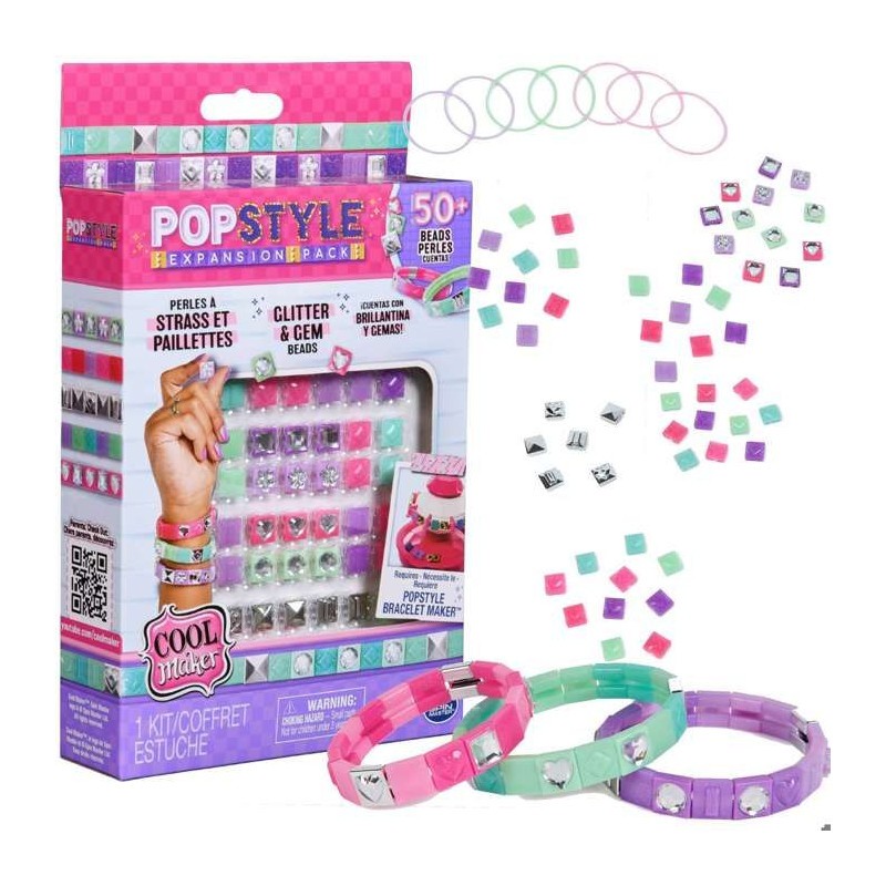 COOL MAKER - POP STYLE PACK STRASS ET PAILLETTES - Extension Pour Machine Kit Bracelet - Bracelet Amitié - Utilisation Simple - Tendance Fun Facile - Jouet Enfant 7 Ans et +- Kits de loisirs créatifs