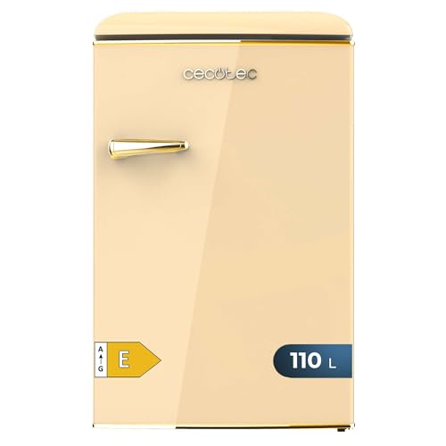 Cecotec Mini Frigo Réfrigérateur Rétro Bolero CoolMarket TT Origin 110 Beige E. Mini Frigo Rétro avec une capacité de 110L, Classe E, Icebox, LED intérieur, Poignée Chromée, Plateaux en Verre