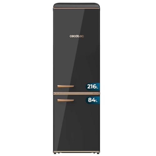 Cecotec Réfrigérateur Combiné 2 Portes Rétro 300 L Bolero CoolMarket Combi Origin 300 Noir E. Hauteur 191,5 cm et 60 cm de large, Contrôle de la Température, Poignée Chromée et Étagères en Verre, Noir