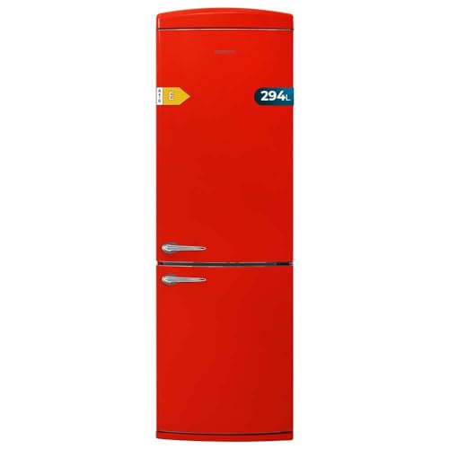 Cecotec Réfrigérateur Combiné Rétro 300L Bolero CoolMarket Combi Origin 300 Rouge E, Classe E, LED Intérieur, Crisper Box, Contrôle de Température, Poignée Chromée et Tablettes en Verre.