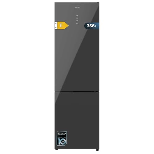 Cecotec Frigorífico Combi 2 Puertas Cristal Negro de 322 Litros Bolero CoolMarket Combi 322 Glass Black E. Altura 185 y 60 cm de Ancho, Motor Inverter Plus, Sistema Multi Air flow, Total No frost