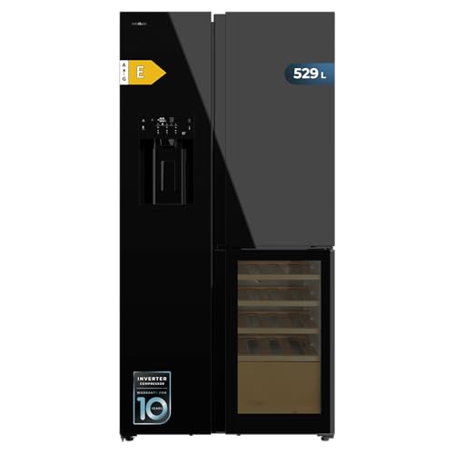 Cecotec Réfrigérateur avec 3 portes Bolero CoolMarket TDW 529 WID Black Glass E. Réfrigérateur 3 portes noir, cave à vin, 529L, Inverter Plus, Total No Frost, E, MultiAirFlow, Fast Cooling.