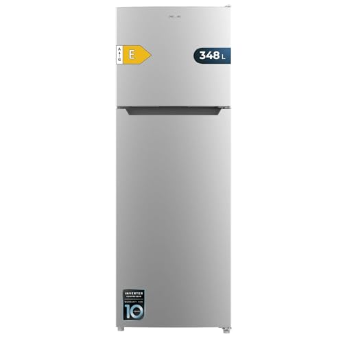 Cecotec Réfrigérateur à deux portes Bolero CoolMarket 2D 348 NF Inox E. Compresseur Inverter, 348L, NoFrost, classe E, design inox moderne, faible consommation d'énergie.