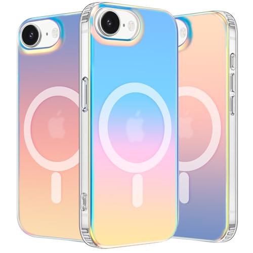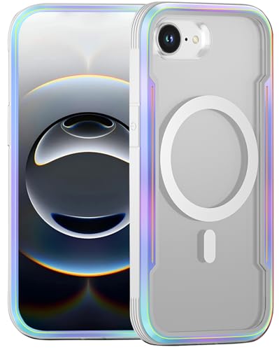 nicekool Magnétique Coque pour IPhone 16E, Compatible MagSafe Anti Jaunissement Rayures Protection Antichoc Coque, Étui Housse Téléphone Mate Irisée Arrière Givrée, Fluorescente Translucide