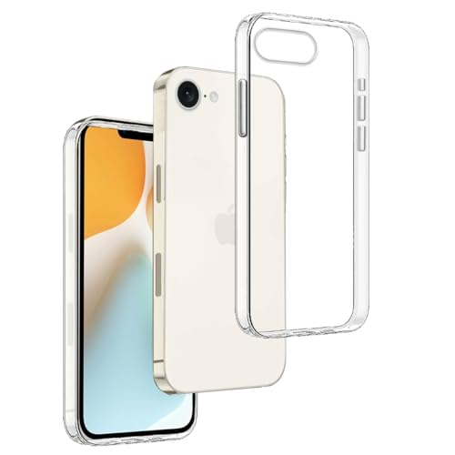 Phoona Coque iPhone 16e avec 2 Pièces Protection Écran en Verre Trempé, Ultra Transparente Silicone Gel TPU Antichoc Anti-Jaune Etui Bumper