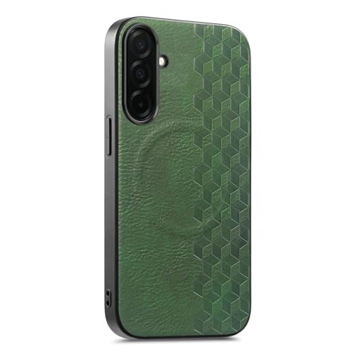 COQUE Magnétique à Carreaux 3D pour Samsung Galaxy S26, Couleur Unie Simple, Anneau Magnétique Intégré, Housse de Protection Antichoc en Cuir PU pour Samsung Galaxy S26-Vert