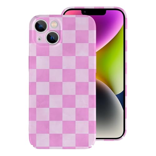 GVYGVY Coque fine et robuste compatible avec iPhone 14 – Coque à carreaux roses de 6,1 po compatible avec iPhone 14 pour homme et femme, anti-rayures et antichoc