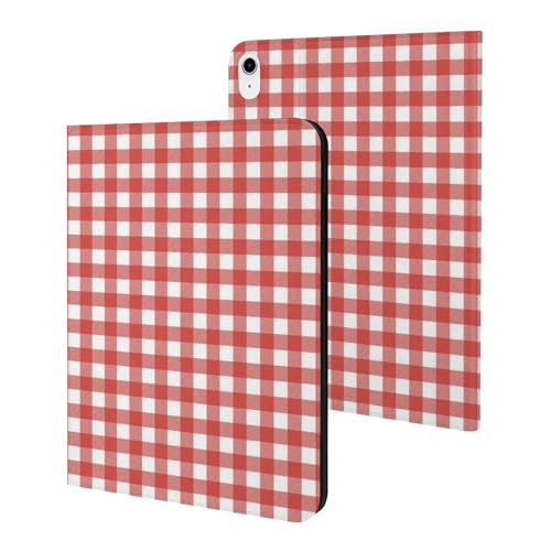 Compatible avec iPad A16 11" 2025, coque fine texturée à carreaux rouges et blancs compatible avec iPad 10e génération 10,9 po 2022 fonction veille/réveil automatique avec support