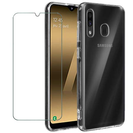 New&Teck Coque Samsung Galaxy A20E - Protection Intégrale en Silicone Transparent TPU + Verre Trempé de Haute Qualité, Dureté 9H