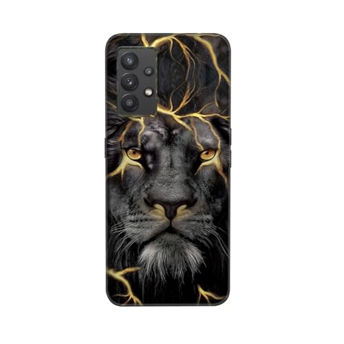 DiaryTown pour Coque Samsung Galaxy A32 4G, Etui Noir en Slim Silicone Souple avec Motif, TPU Anti Rayures Antichoc Case Housse de Protection pour Samsung Galaxy A32 Lite - Lion Or Noir