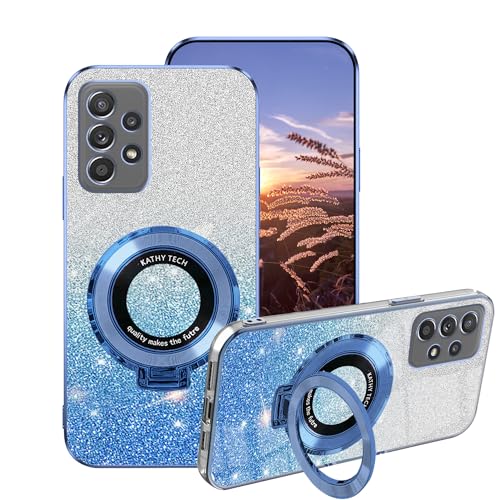 Compatible avec Coque Samsung A32 4G Transparente Bling Paillette, Etui Samsung Galaxy A32 4G Antichoc avec Anneau Support Galvanisé Brillant Protection Silicone Aesthetic Housse (Bleu)