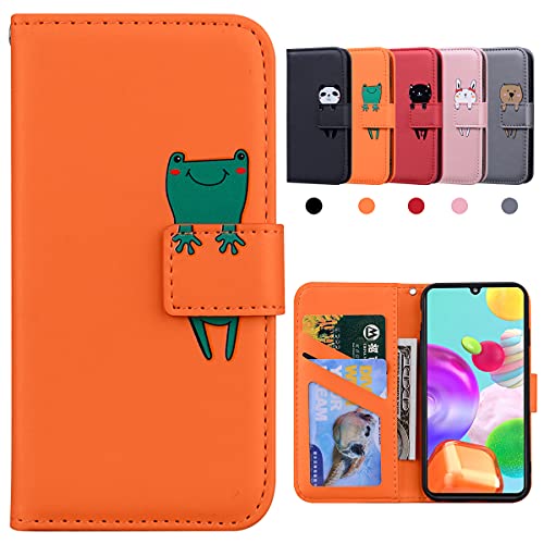 Kedic Coque Samsung A41, Coque Galaxy A41, Pochette Protection Etui Samsung A41, Fermeture Magnétique,Flip Case Compatible avec Samsung Galaxy A41, Orange