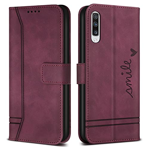 Bravoday Coque pour Galaxy A50 / Galaxy A50S / Galaxy A30S, Etui Cuir avec Magnetique, Flip Pochette Housse pour Galaxy A50 / Galaxy A50S / Galaxy A30S Protection, Vin Rouge