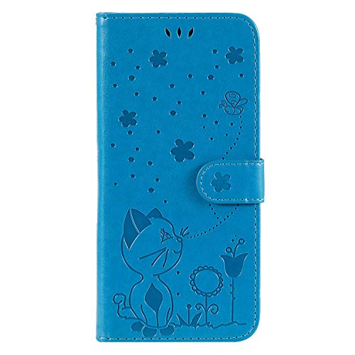Coque Samsung Galaxy A52S 5G Motif Animaux Chat et Abeille, Étui Housse de Protection Fine Flip Anti-Choc,Pochette en Cuir Portefeuille pour téléphone avec Fonction Debout,Bleu