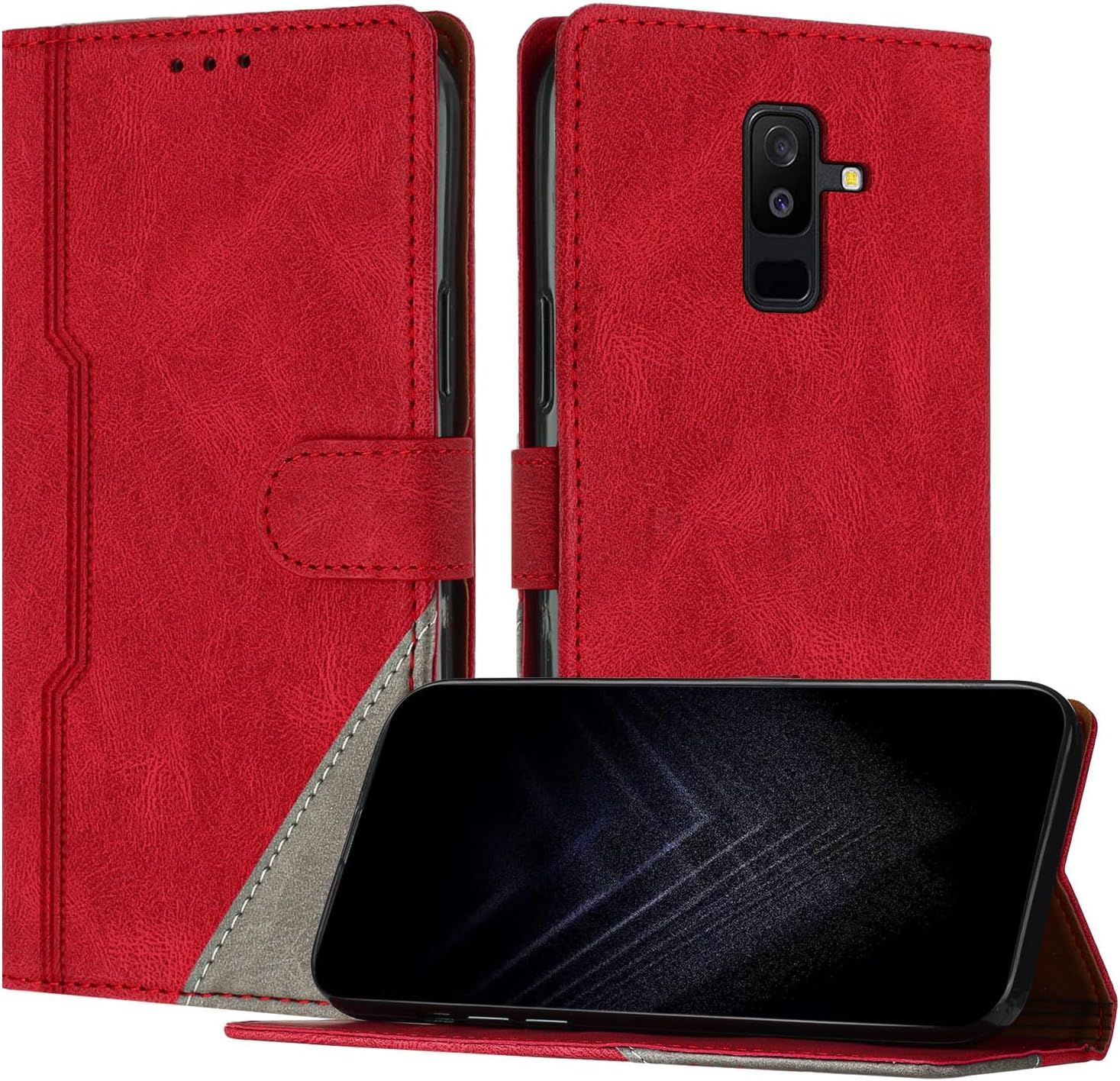 SONWO Coque pour Galaxy A6 Plus 2018, Etui en Cuir PU Portefeuille Housse Fermeture Magnétique und Flip pour Galaxy A6 Plus 2018, avec Fermeture Magnétique, Rouge