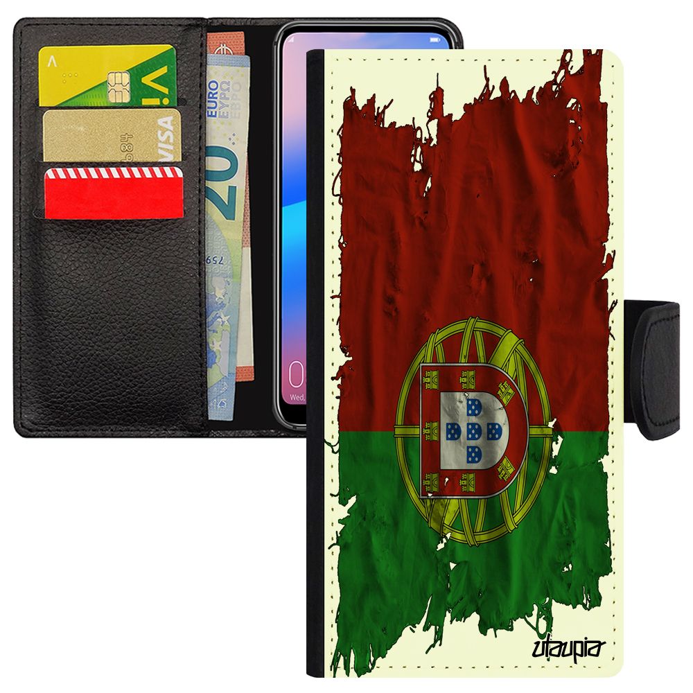 Coque Pour Samsung A6 Plus 2018 Simili Cuir Portefeuille Drapeau Portugal Portugais Coupe D'europe Jeux Olympiques Jo Foot De Galaxy