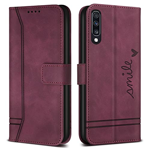 Bravoday Coque pour Galaxy A70, Etui Cuir avec Magnetique, Flip Pochette Housse pour Galaxy A70 Protection, Vin Rouge