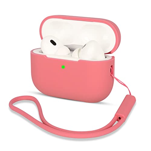 ORNARTO Coque pour AirPods Pro 2 (2022) en Silicone, Protection AirPods Pro 2ème Génération [avec Corde], étui airpods Pro 2 Antichoc, Case AirPods Pro 2 [Protection Complète] - Rose