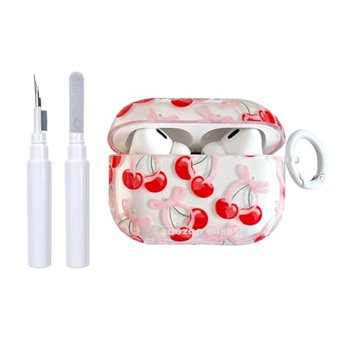 Reownest Coque AirPods Pro 2/Pro avec Kit Nettoyage Mignon Cerise Bow Pattern Design Aesthetic Antichoc Porte - Clés Couvercle Soft Etui pour Airpods Pro 2/Pro - Rouge