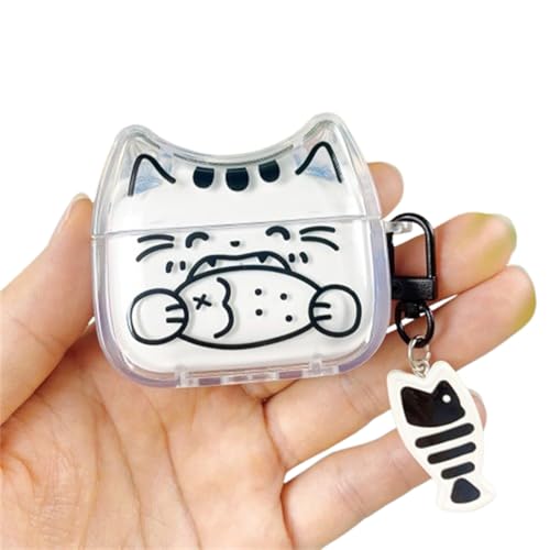 GULVQYF Coque pour AirPods Pro 2e/1ère génération avec porte-clés, motif chat mignon de dessin animé pour Air Pod Pro/Pro 2