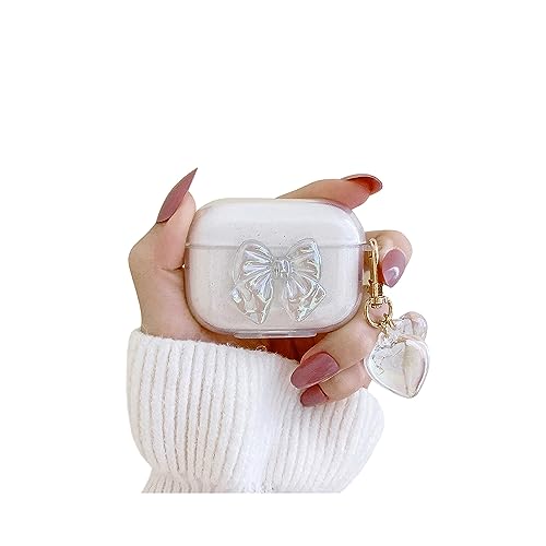 Ownest Compatible avec Coque AirPods Pro 2 Aesthetic Cute Cristal Arc Bow Transparente Design Etui avec Glitter Coeur Porte-clés Accessoires Femme TPU Housse pour Protection Airpods Pro 2 -A-P2