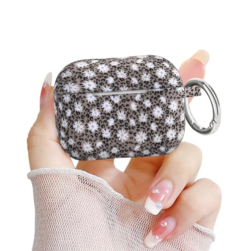 Newseego Coque pour Airpods Pro 2/1, Mignon Fleur et Léopard Motif avec Mousqueton Rond Étui Silicone Résistant à la Poussière et aux Rayures Housse de Protection Protege pour Airpods Pro 2 & Pro 1