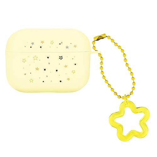 Newseego Coque Airpods Pro 2 2022 pour Filles et Femmes - Motif Étoiles Mignonnes avec Ornements, Protection Antichoc en Silicone Souple pour Airpods Pro 2ème Génération - Jaune