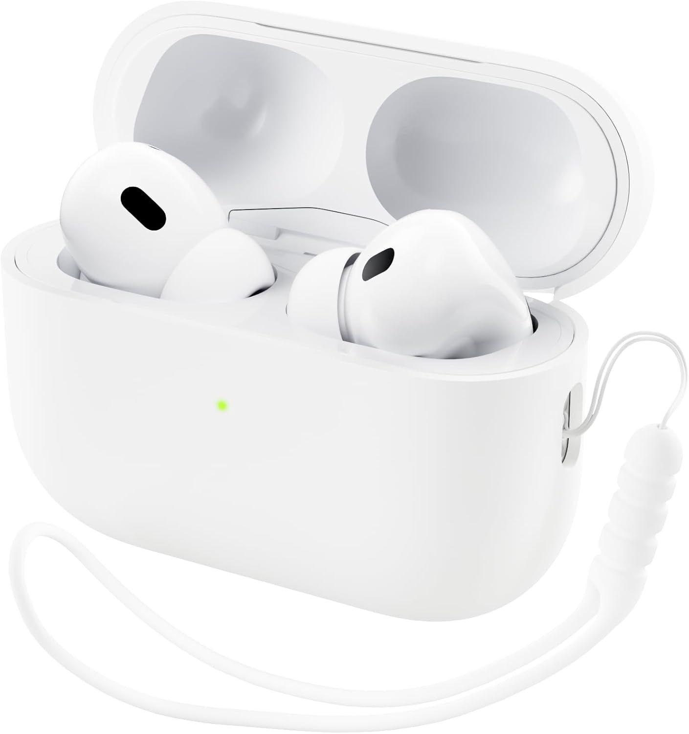 Coque pour AirPods Pro 2 (2022) en Silicone, Protection AirPods Pro 2ème Génération [avec Corde], étui airpods Pro 2 Antichoc, Case AirPods Pro 2 [Protection Complète] - Blanc