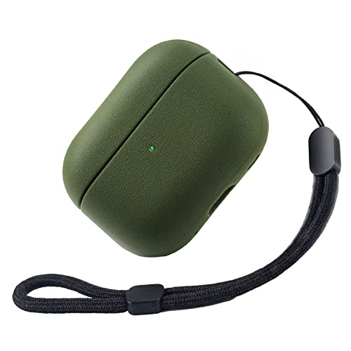 Teyomi Coque pour AirPods Pro 2, Touche de Cuir Etui Airpods Pro 2,Protection Airpods Pro 2eme Generation avec Dragonne,Anti-Antichoc Housse pour Apple AirPods Pro2 Étui de Chargement(Vert Militaire)