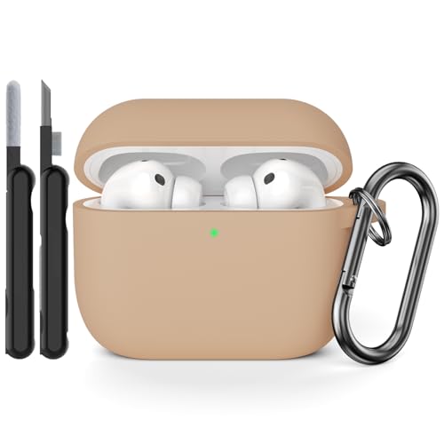 AOTUAO Coque Compatible avec AirPods Pro 3ᵉ Génération avec Kit de Nettoyage, Housse Étui Protection Complète en Silicone Case Cover pour Airpods Pro 3 avec Mousqueton, Milk Tea