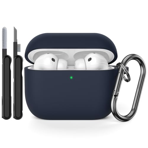 AOTUAO Coque Compatible avec AirPods Pro 3ᵉ Génération avec Kit de Nettoyage, Housse Étui Protection Complète en Silicone Case Cover pour Airpods Pro 3 avec Mousqueton, Midnight Blue