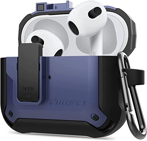 Nillkin Coque Airpods 3 (2021), Couvercle Escamotable, étui Rigide Portable Antichoc avec Porte-Clés pour Airpods 3 [Prise en Charge du Chargement sans Fil], Bleu