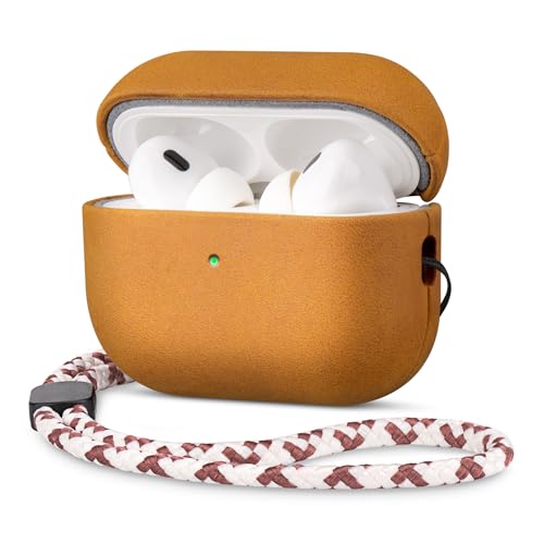 RIXENY Cuir Véritable Coque pour AirPods Pro 3 (3e génération 2025)-Protection Etui Housse, Sangle Tressée Réglable, Style Élégant, Coque Dure Résistante & Patine Authentique, Orange Vif