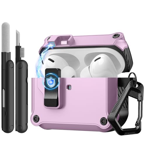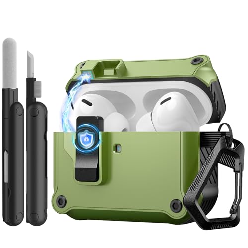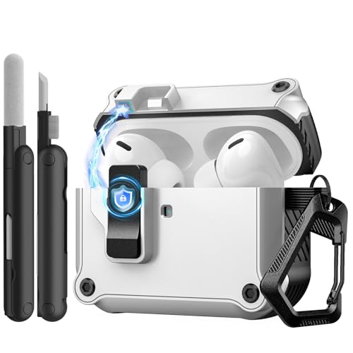 MOBOSI Coque pour AirPods Pro 2 avec verrouillage, compatible avec la coque Airpod Pro 2e/1ère génération, coque de protection de qualité militaire avec kit de nettoyage et porte-clés pour homme (2023