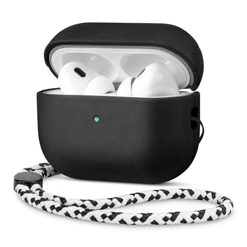 Teyomi Coque pour AirPods Pro 2, Touche de Cuir Etui Airpods Pro 2, Protection Airpods Pro 2eme Generation avec Dragonne, Anti-Antichoc Housse pour Apple AirPods Pro2 2022 Étui de Chargement (Noir)