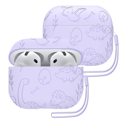 ECZOIL Gravure Coque Compatible avec AirPods 4, Dinosaure Modèle Silicone Case avec Corde en Silicone pour AirPods 4th Génération-Violet
