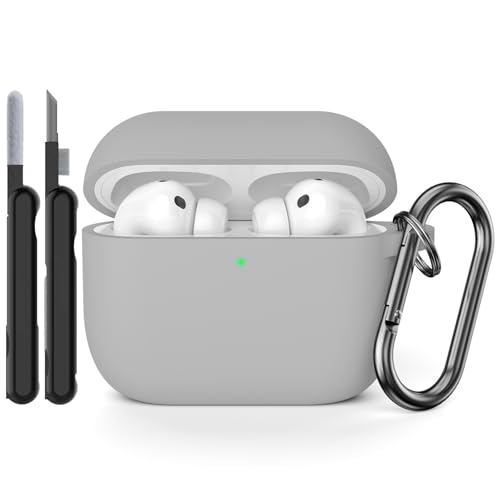 AOTUAO Coque Compatible avec AirPods Pro 3ᵉ Génération avec Kit de Nettoyage, Housse Étui Protection Complète en Silicone Case Cover pour Airpods Pro 3 avec Mousqueton, Gris