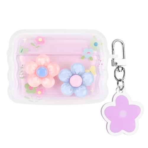 Newseego Coque Airpods Pro pour Filles Femmes, Mignon Fleurs 3D Vague Design Transparent Coque Airpods Pro(2019) avec Porte-clés Floral,Souple TPU Antichoc Housse de Protection pour Airpods Pro