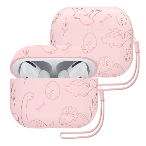 ECZOIL Gravure Coque Compatible avec AirPods Pro 2/1, Dinosaure Modèle Silicone Case avec Corde en Silicone pour AirPods Pro 2nd/1st Génération-Rose