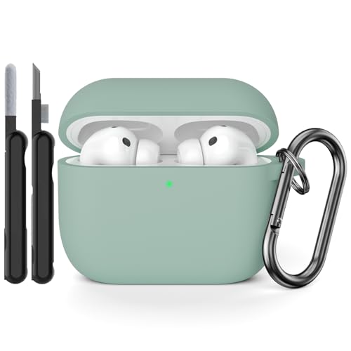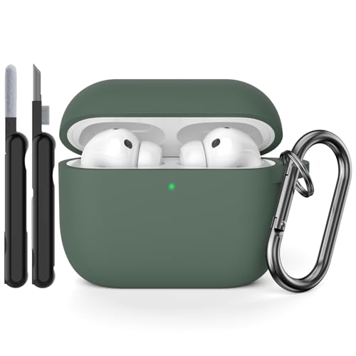 AOTUAO Coque Compatible avec AirPods Pro 3ᵉ Génération avec Kit de Nettoyage, Housse Étui Protection Complète en Silicone Case Cover pour Airpods Pro 3 avec Mousqueton, Pine Green