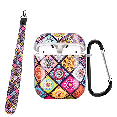 Newseego Coque Airpods 2 Fille Femmes Mignonne Bohème Design Drôles étui de Charge Airpod en Silicone Souple Antichoc avec Porte-clés & Cute Bohème Design Cordon Housse en Silicone pour AirPods 2&1