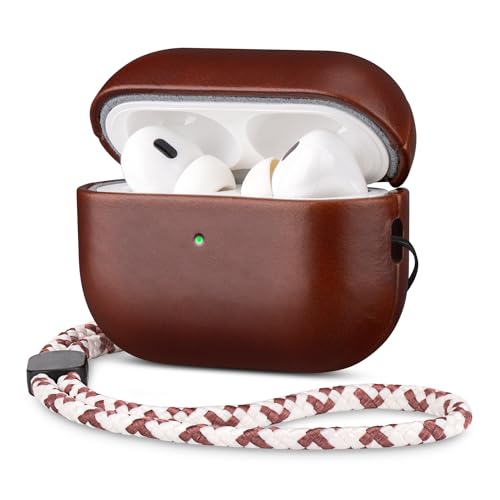 RIXENY Cuir Véritable Coque pour AirPods Pro 3 (3e génération 2025)-Protection Etui Housse, Sangle Tressée Réglable, Style Élégant, Coque Dure Résistante & Patine Authentique, Marron Rougeâtre