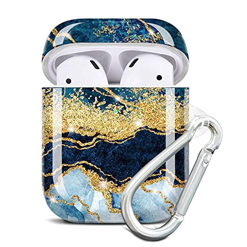 JIAXIUFEN Coque AirPods, Coque Housse Étui Protecteur pour AirPod, Protection Coque pour AirPods 2 & 1 génération Case Silicone Cover avec Porte-clés - Bleu foncé