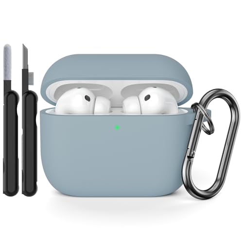 AOTUAO Coque Compatible avec AirPods Pro 3ᵉ Génération avec Kit de Nettoyage, Housse Étui Protection Complète en Silicone Case Cover pour Airpods Pro 3 avec Mousqueton, Cloud Grey
